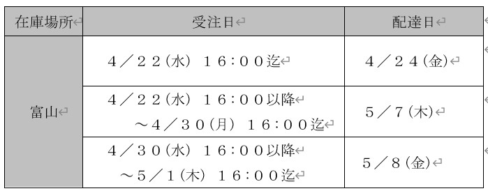 富山物流 4/24 (金) ~ 5/6(水)