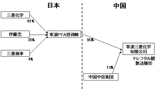 三菱化学、伊藤忠及び三菱商事の日本側3社が寧波PTA投資株式会社(以下「日本投資新社」)を日本で設立。 |