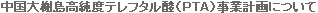 宇一郎、 以下「伊藤忠」)及び三菱商事株式会社(本社:東京都千代田区、 社長:佐々木 幹夫、 以下「三菱商事」)は、今般、中国における高純度テレフタル酸(PTA)事業について事業進出計画を決定し、3月10日に詳細事業化計画書を中国政府に提出いたしました。本計画書の中国政府最終認可は本年6〜7月になる予定です。