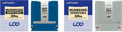 UDOディスクは、英国プラズモン社が開発した青色レーザーを利用した光記録装置に使用する大容量光ディスクで、5.25型MOディスクと同様のカートリッジを使用した記録容量30GB/両面のディスクです。