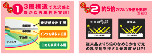 印刷の色ムラを低減させる「ワイド反射膜(ディスク円周部)」を採用。 |