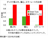 アゾ系色素は、太陽光などの外的要因に強く確実な書込みで信頼性が高く、今回販売のGreen Tune CD-Rには、互換性重視媒体として実績のある「Super Azo色素」を採用しています。