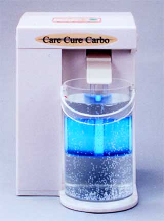 最近では、家庭でも手軽に使用できる人工炭酸泉製造装置の要望が多く寄せられるようになり、この度、従来の装置の機能を限定することで低コスト化を図り、さらに操作性と安全性を高めた炭酸ガスカートリッジを内蔵した、設置工事不要の家庭用高濃度炭酸温水製造器「ケアキュアカーボ」を開発し、販売を開始しました。