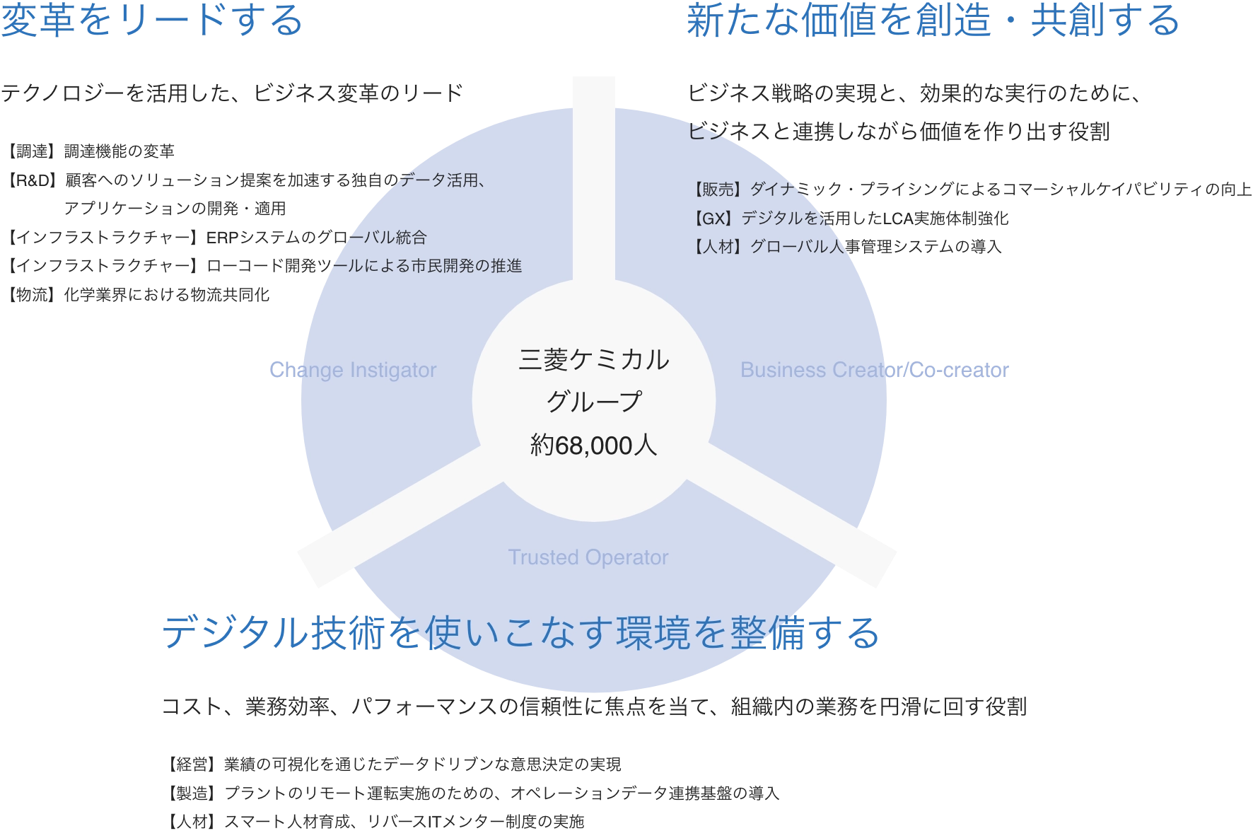 デジタル技術を活用し、社内システムの開発に加え、業務プロセスを効率化/最適化するDXや工場のデジタル化/自動化によるスマートファクトリーを推進し、企業全体の生産性向上と競争力強化に貢献します。製造現場からビジネス領域まで幅広く支援し、AI・IoT・データ基盤などの最新技術を導入。さらに、グローバル規模でのシステム標準化にも対応し、全社のデジタル活用レベルを底上げしながら、新しい価値創出を実現します。