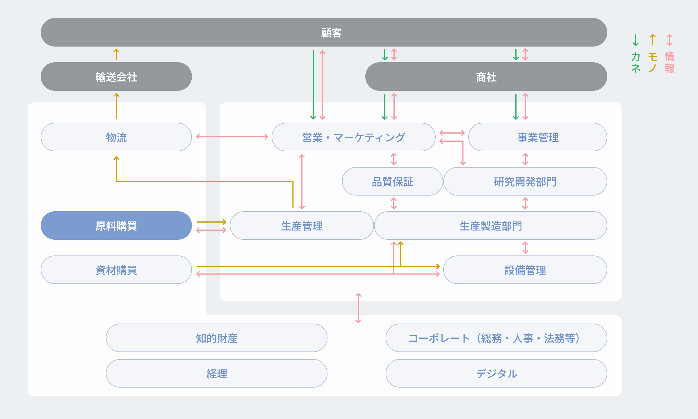 原料購買職はものづくりの“スタートライン”を担う存在として、生産管理や製造部門と密に連携しながら、工場全体の安定操業を支える役割を果たします。自分の判断が事業全体の安定に影響するため、高い貢献実感を得られます。
