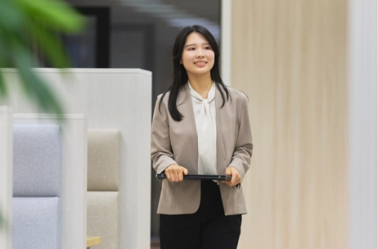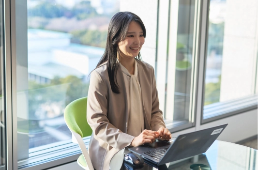 顧客の声を社内に伝え,ブランド・プロモーション戦略も含めた新製品の企画にも主体的に関わる一方、幅広い製品ライナップを持つ三菱ケミカルグループの技術や強みをお客様に説明して価値を届けるなど、両者をつなぐ重要な役割を担います。情報収集力、コミュニケーション力、提案力が総合的に鍛えられるポジションです。