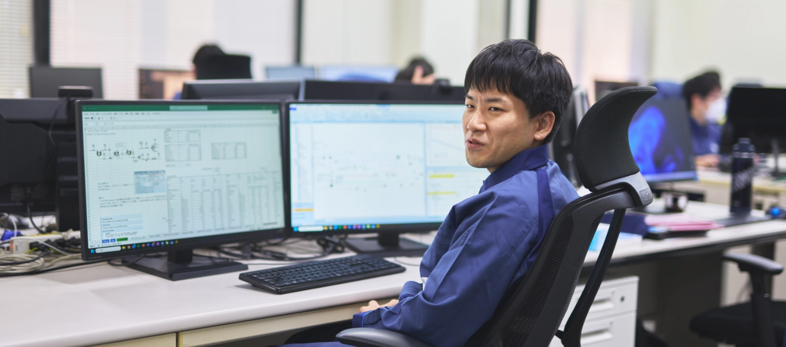 生産プロセスの最適化に携わっています。原料から製品を生み出すプロセスにおいて、どんなことが起きているのか。効率化やコストダウンを妨げているボトルネックは何か。仮説の立案とシミュレーションを重ねてそれを突き止め、プラントの能力を最大限に引き出すための改善を行います。