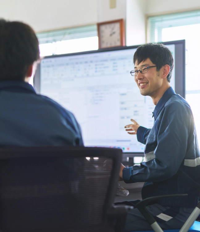 自社内に電気と蒸気を供給するボイラーの運転担当として、幅広い業務に携わっています。トラブルへの対応、発電量・コストの管理といった日々の業務から、設備の改善や更新に向けた検討も行います。また、後輩への育成にも積極的に関わっています。