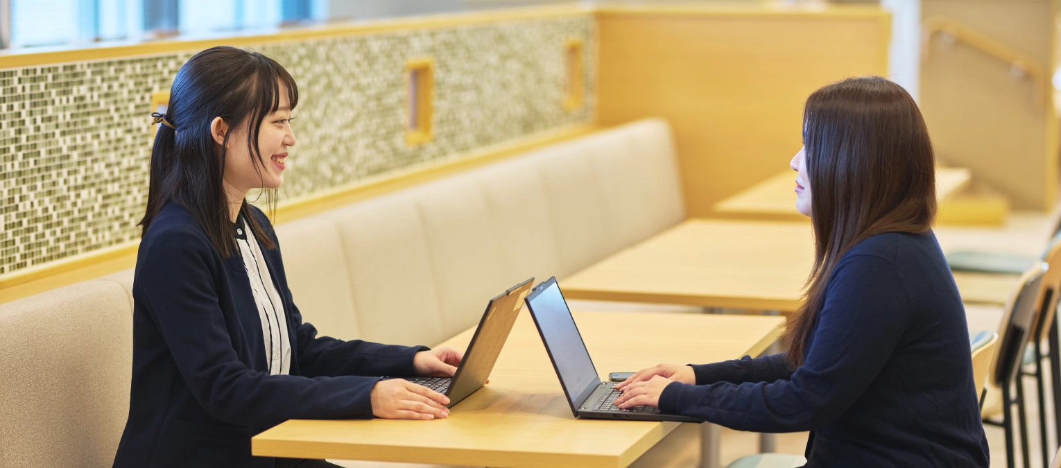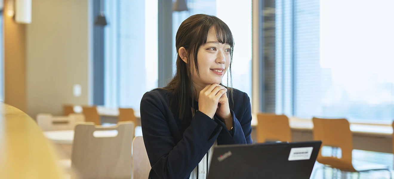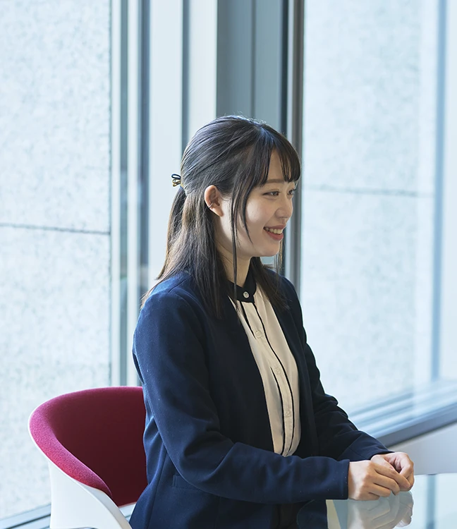 端的に言うと、「人」に惹かれたことが一番の理由です。面接の前に、知的財産本部の先輩社員の方々とお話させていただく機会を設けてもらいました。接し方がとてもオープンで、風通しのよい会社だなと感じました。また、入社前に知的財産本部長が、私たち学生に向けて「将来の仲間」と言っていただいたこともとても心に残っています。この「仲間」という言葉がとても新鮮で、人を大切にする文化が息づく職場だと強く感じました。