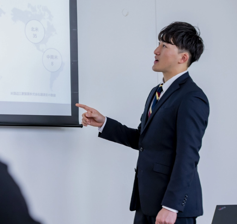 前述した2つの軸を満たすという観点で所謂大企業を志望していました。。重工、自動車、メーカー以外ではデベロッパー……様々な業界を見ているうちに、素材という社会の基盤を生み出している化学メーカーに興味を持つようになりました。表に出ることは少ないかもしれませんが、社会を確かに支えている。どこか、軟式野球をしていた自分とも重なりました。そして三菱ケミカルは、業界の圧倒的なリーディングカンパニーです。2つの軸にこれ以上、合致する企業はないと確信しました。
