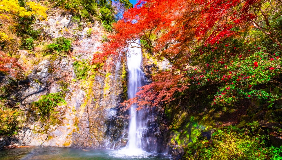 明治31年に開設された大阪府最初の自然公園です。箕面の大滝と渓流が織りなす風光明媚な情景を体感できる日本でも随一の場所です。関西有数の紅葉の名所として有名で、名物「紅葉の天ぷら」を味わうことができます。